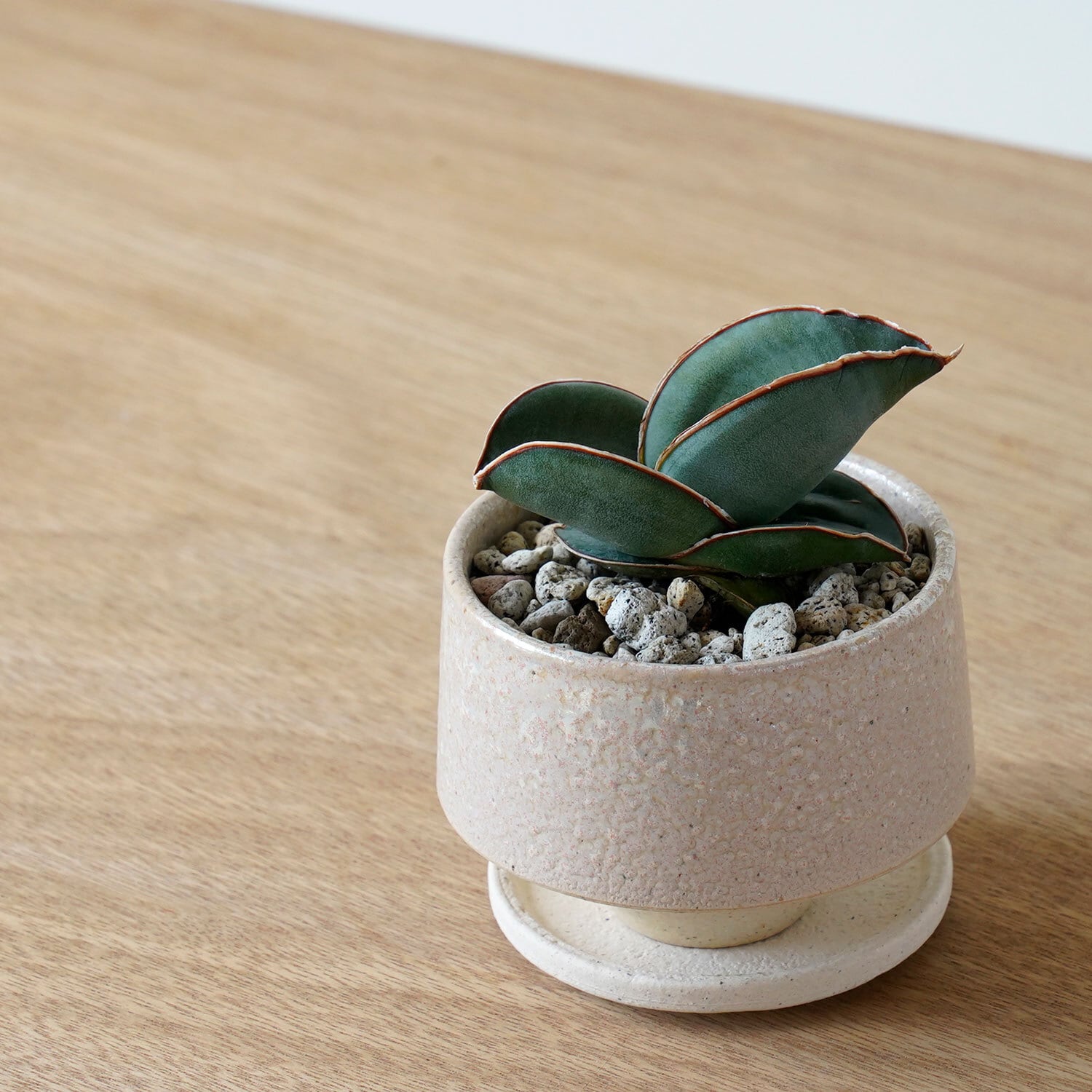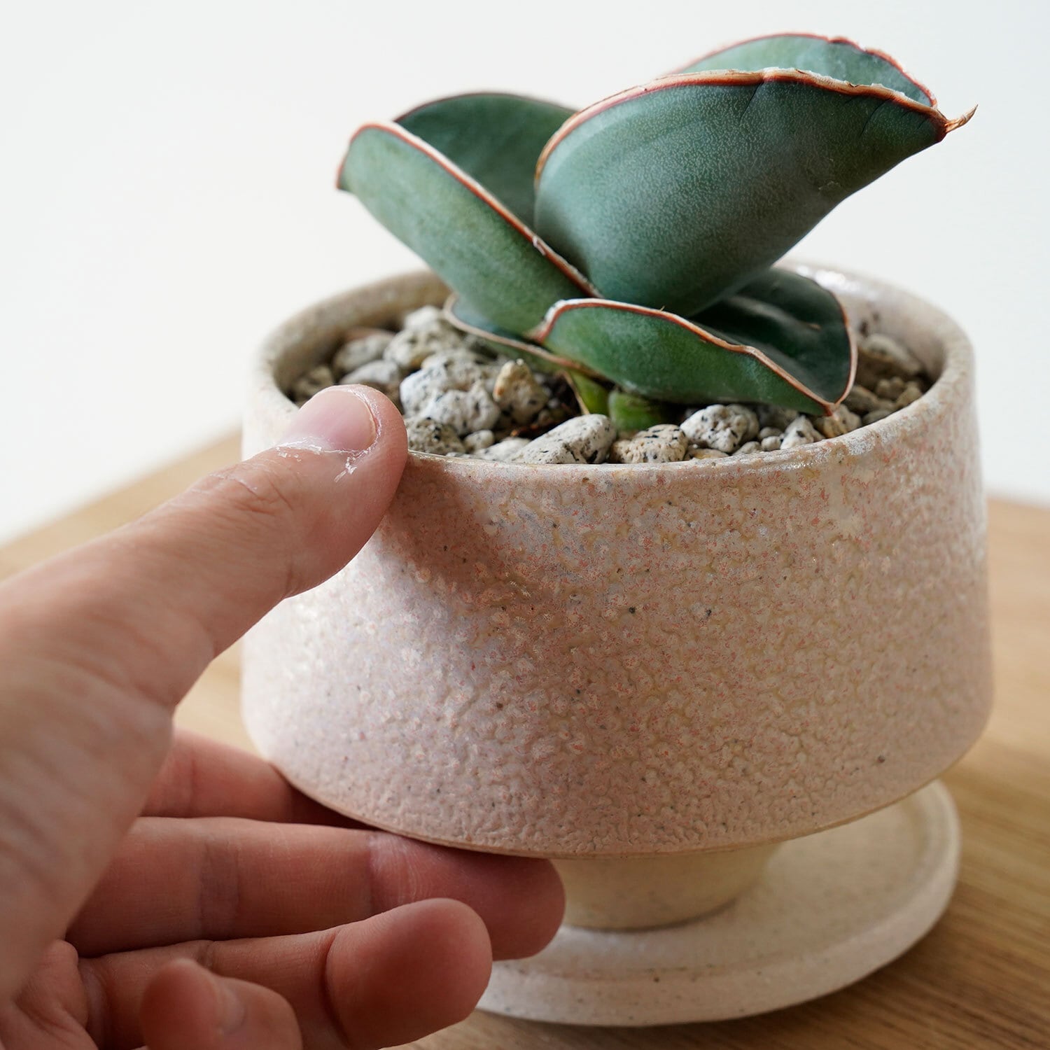土の表面に敷いてる軽石を退けてみて、土がサラサラに乾いていたらたっぷりと水やり。毎日与える必要はありません。春夏は週1〜2回。気温の低い時期は休眠するので、11月から3月は一切水やりしなくてOK。