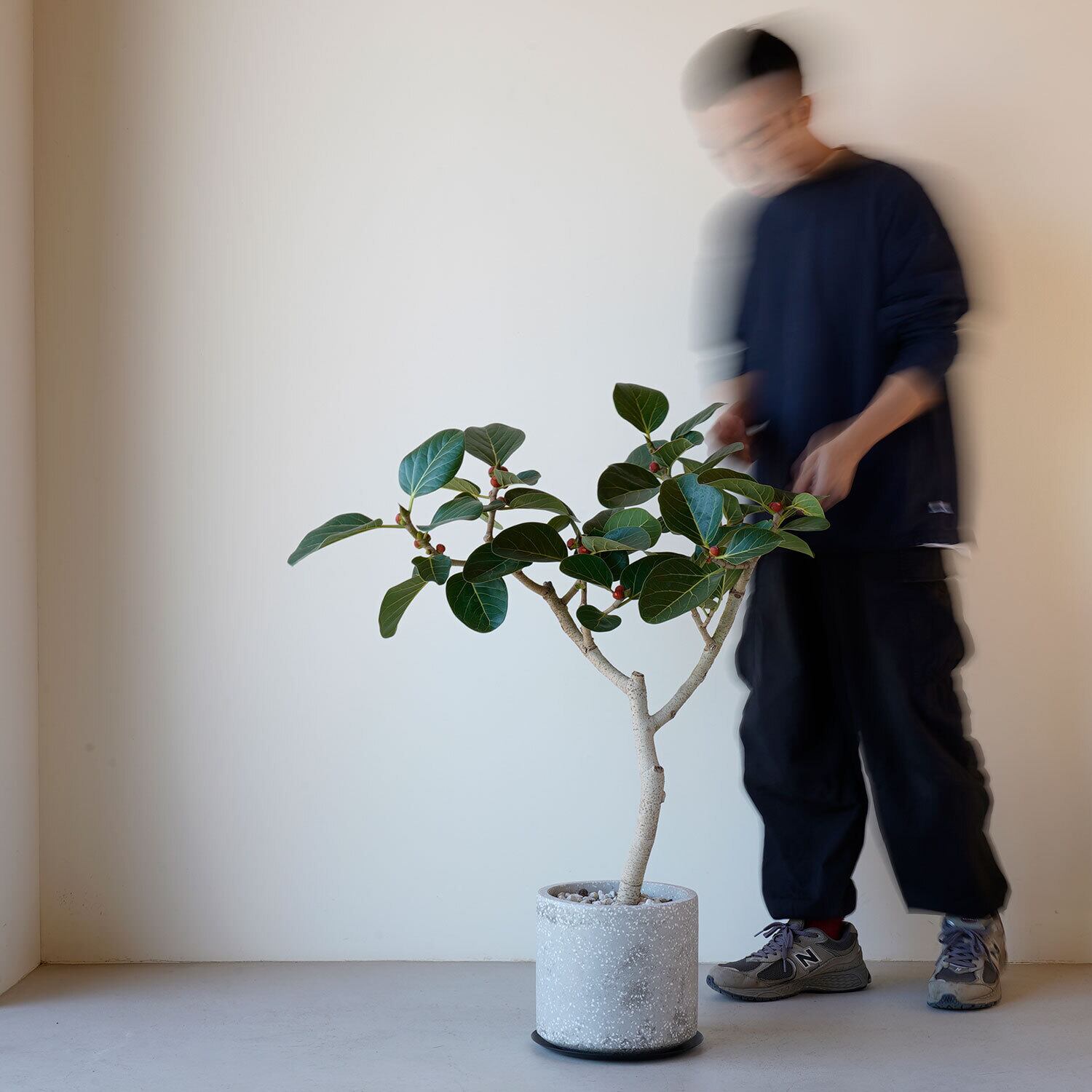 今は背丈控えめ。でもゆっくりと成長していくので、将来的にはシンボルツリーにも。気根の姿を楽しみながら、コンパクトに育ててもよし、大きく育てても◎。