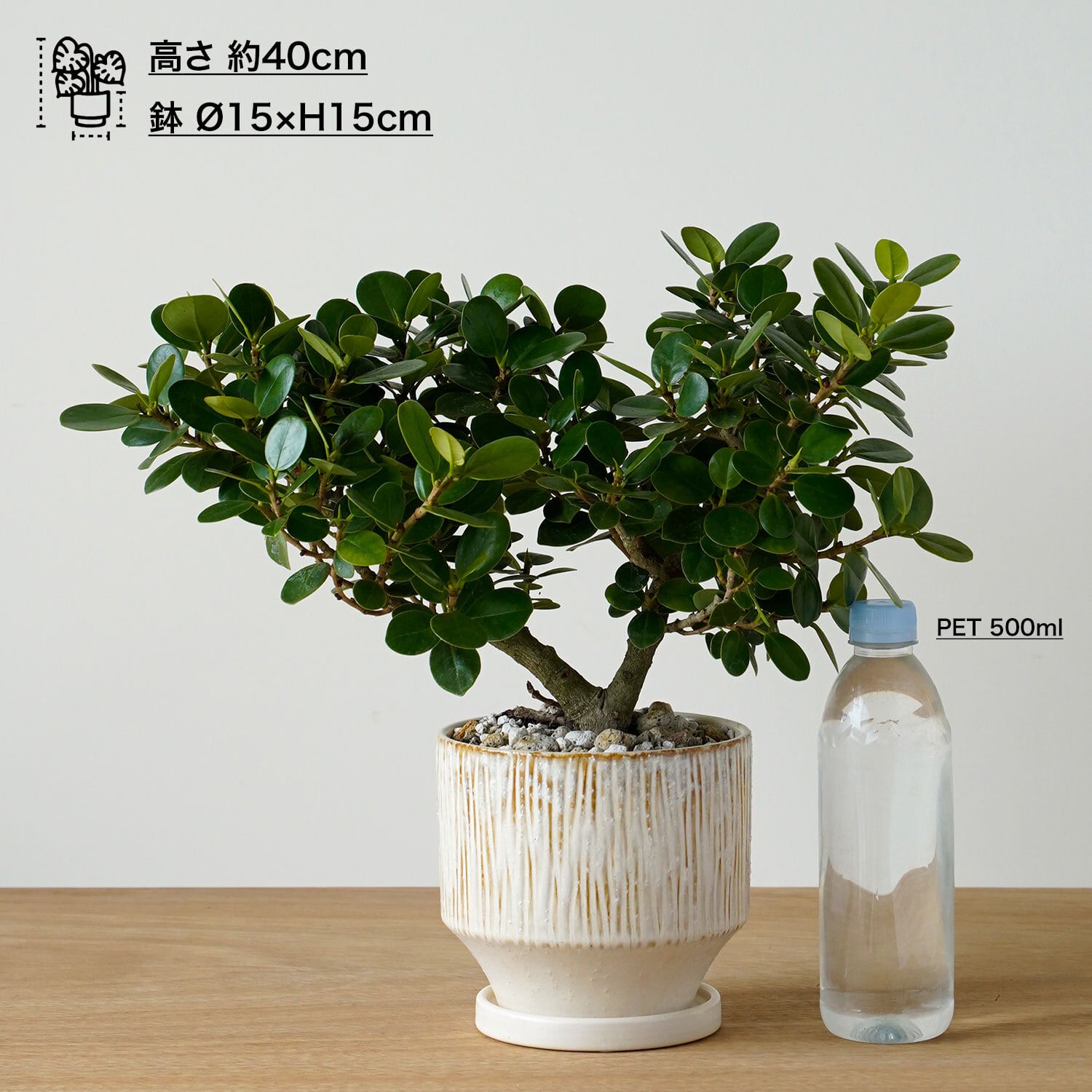 ・鉢・受皿は陶器製。ベージュ系の色味。鉢底穴あり。