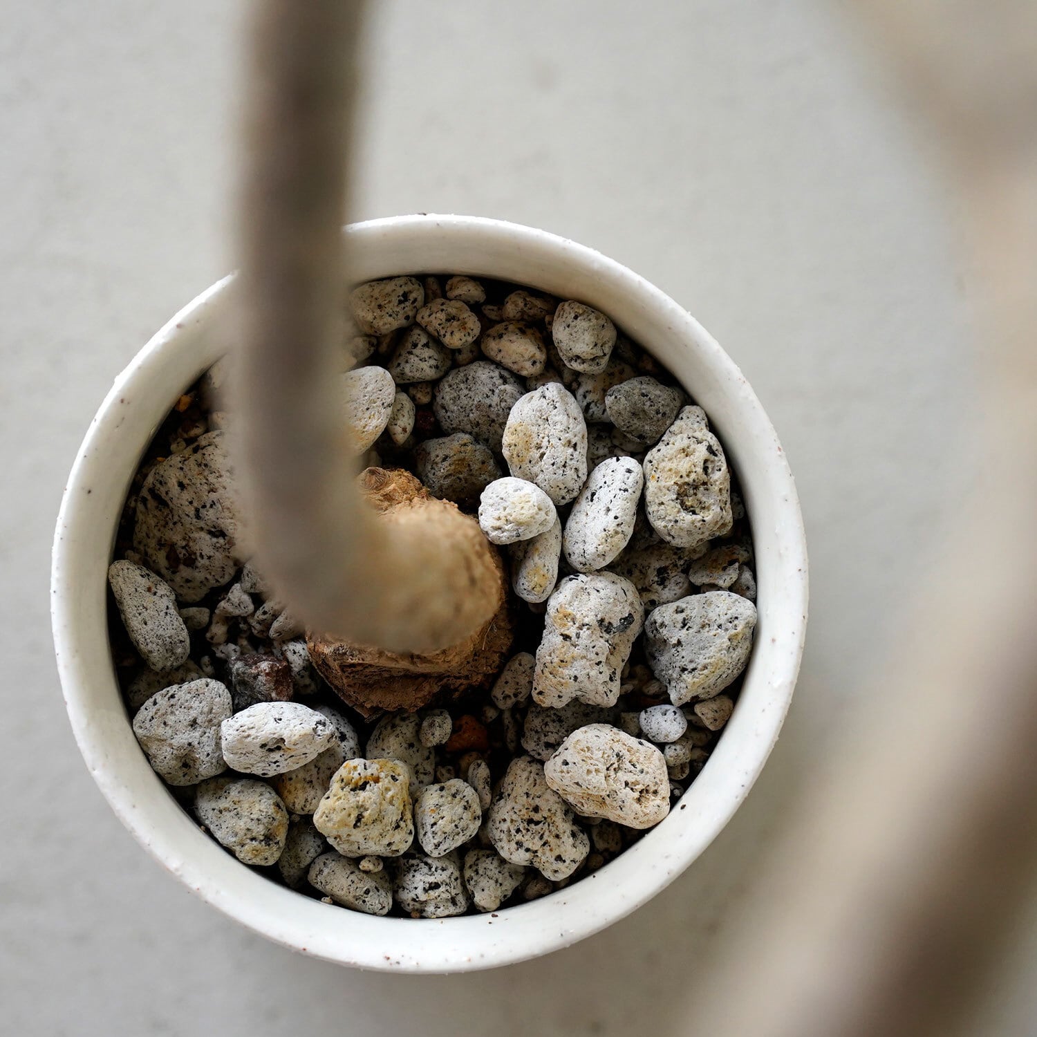 土の表面に敷いてる軽石を退けてみて、土がサラサラに乾いていたらたっぷりと水やり。毎日与える必要はありません。