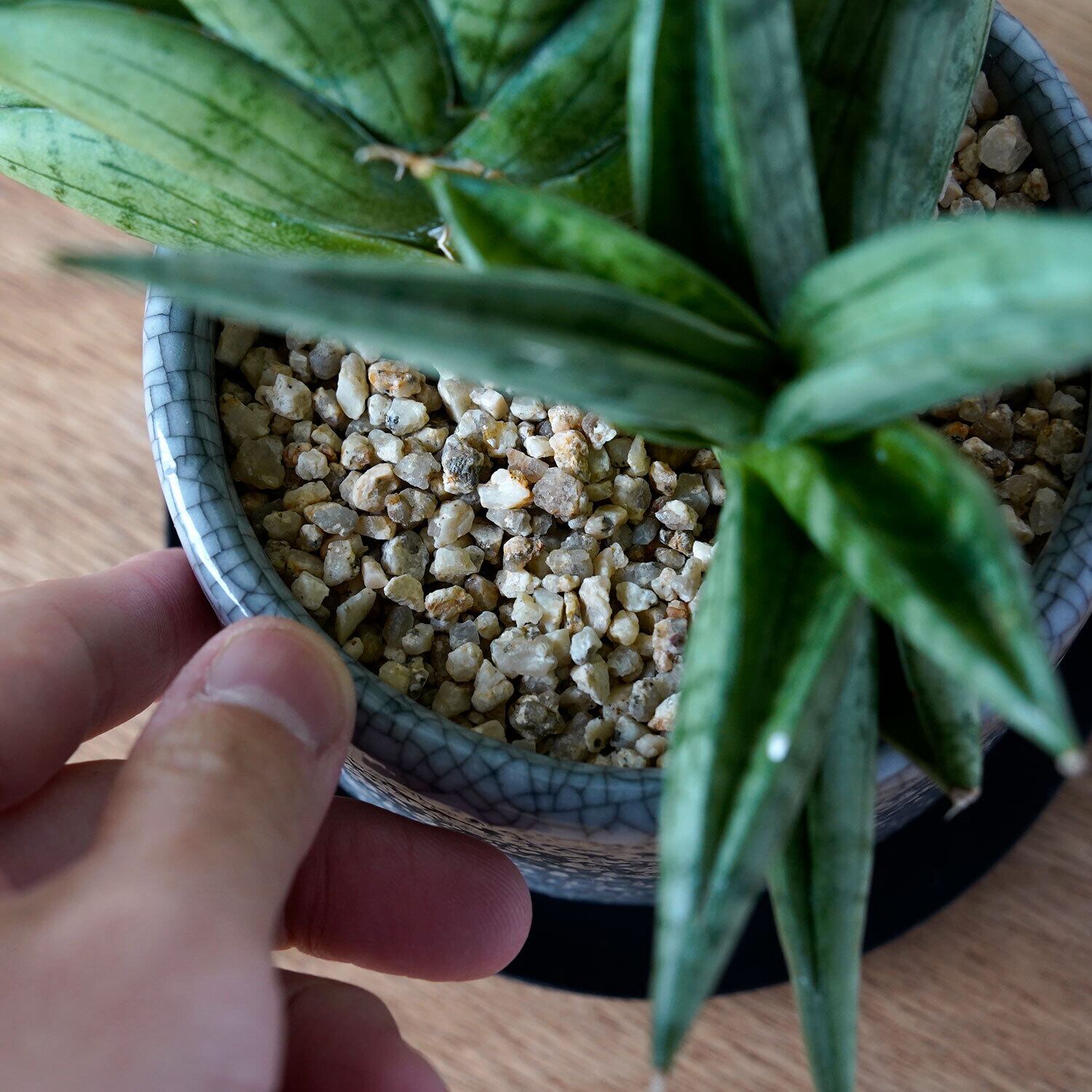土の表面に敷いてる軽石を退けてみて、土がサラサラに乾いていたらたっぷりと水やり。毎日与える必要はありません。11月の終わりから4月上旬ころまでは休眠するため、水やりは一切不要です。
