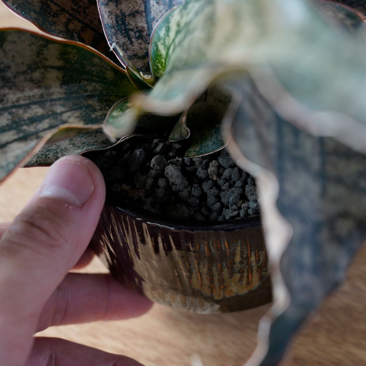 土の表面に敷いてる軽石を退けてみて、土がサラサラに乾いていたらたっぷりと水やり。毎日与える必要はありません。11月の終わりから4月上旬ころまでは休眠するため、水やりは一切不要です。