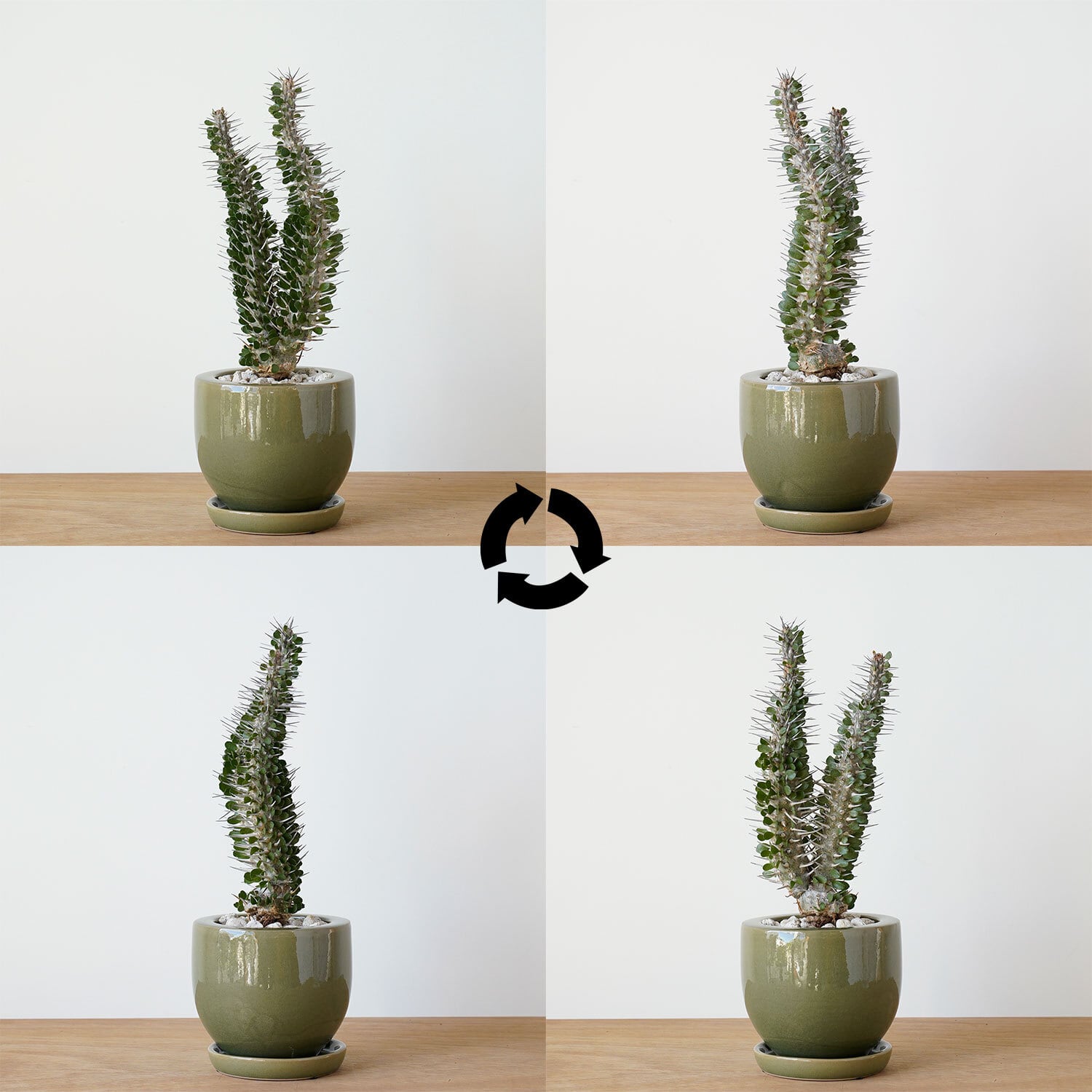 植物に日光が当たる場所が良いです。南の窓辺や屋外が適所。空気が澱まないよう、一日5分でも十分な換気を行ったり、サーキュレーターでそよ風のような流れを作ってあげるのも効果的です。エアコンの乾燥した風は苦手ですので、直接当たらないよう注意しましょう。