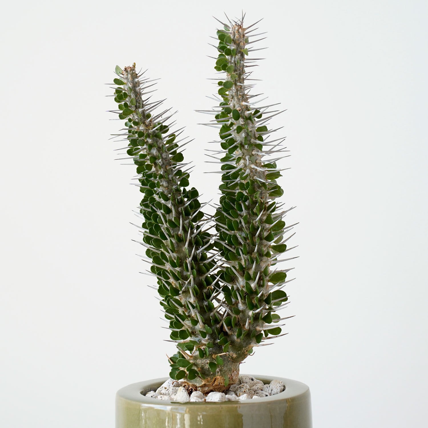 鋭いトゲの間に小さな葉が映えるアローディアの一種。