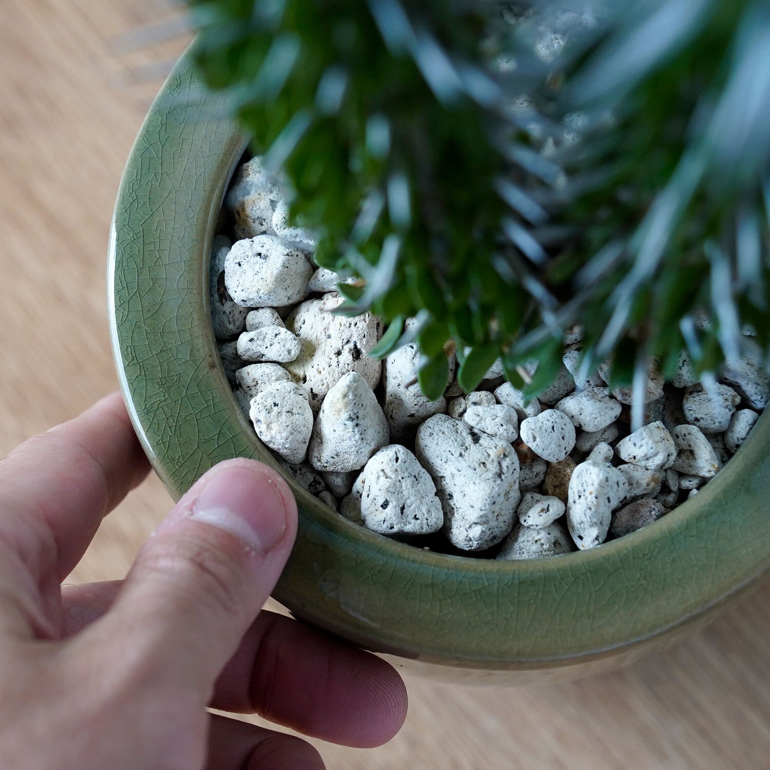 土の表面に敷いてる軽石を退けてみて、土がサラサラに乾いていたらたっぷりと水やり。毎日与える必要はありません。