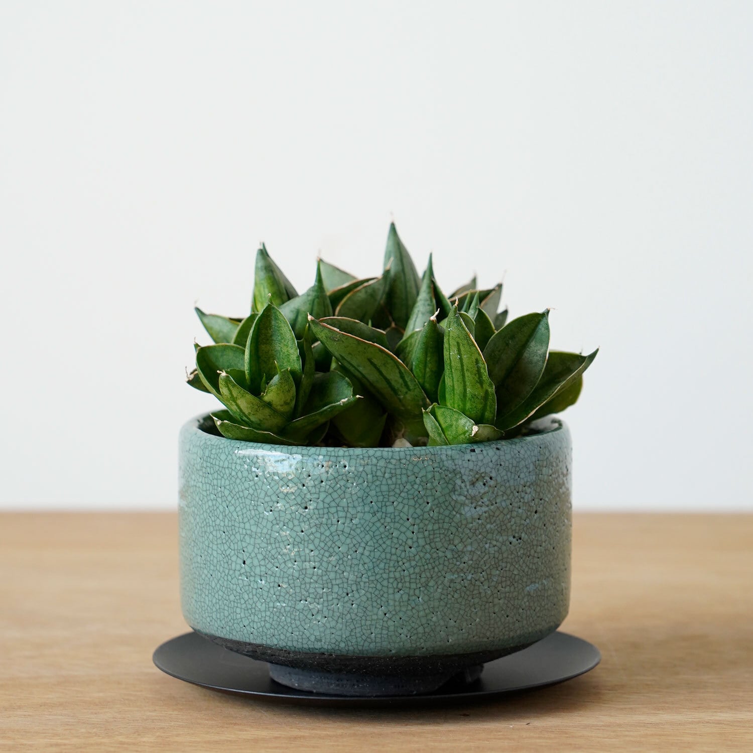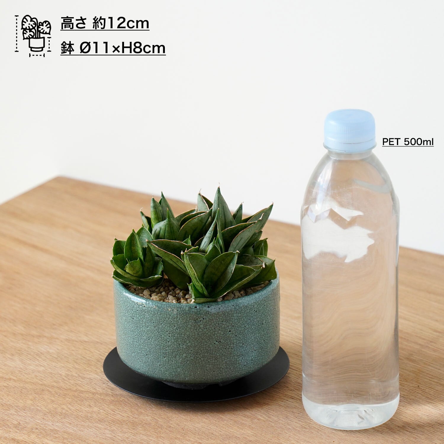 鉢は国産のしっかりした鉢、受皿はスチール製です。