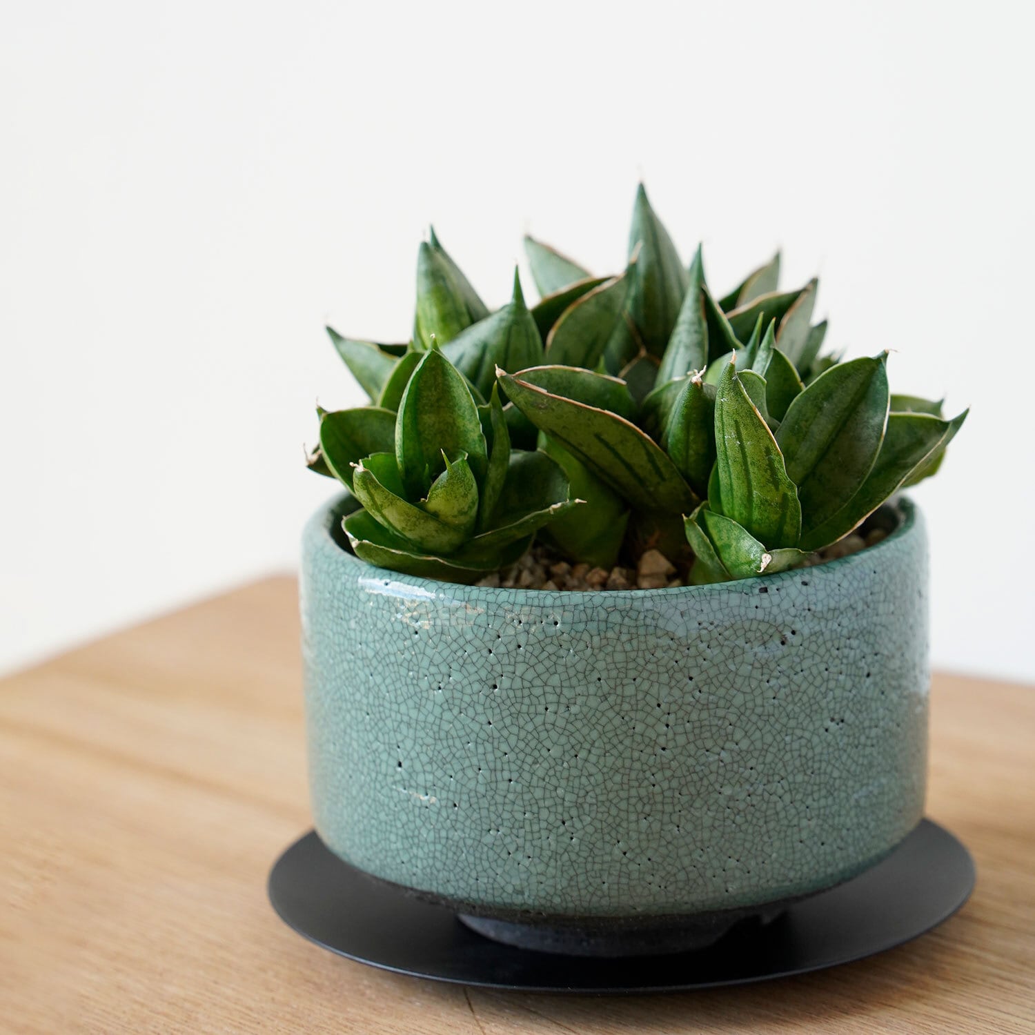 短時間でも植物に日光が当たる場所が良いです。耐陰性(日照不足に耐える力)に優れているので窓から少し離れた明るい日陰でもOK。ただ、締まった株にするために、きちんと日光に当ててあげると良いです。空気が澱まないよう、一日5分でも十分な換気を行ったり、サーキュレーターでそよ風のような流れを作ってあげるのも効果的です。エアコンの乾燥した風は苦手ですので、直接当たらないよう注意しましょう。