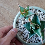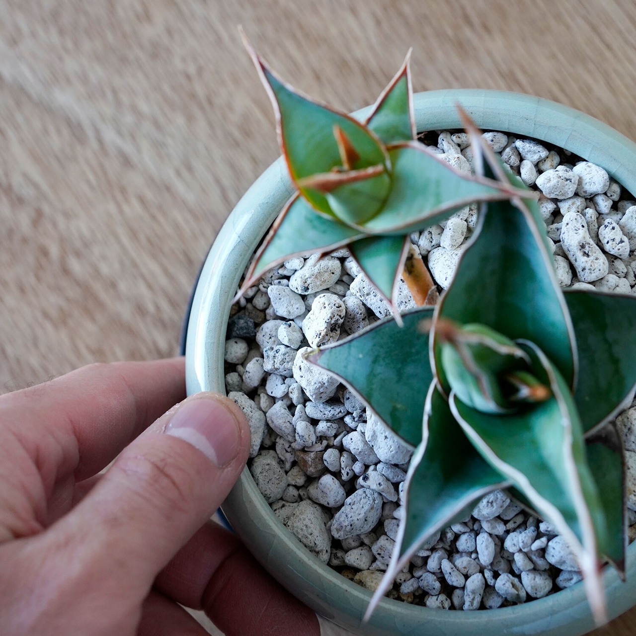 土の表面に敷いてる軽石を退けてみて、土がサラサラに乾いていたらたっぷりと水やり。毎日与える必要はありません。春夏は週1〜2回。気温の低い時期は休眠するので、11月から3月は一切水やりしなくてOK。