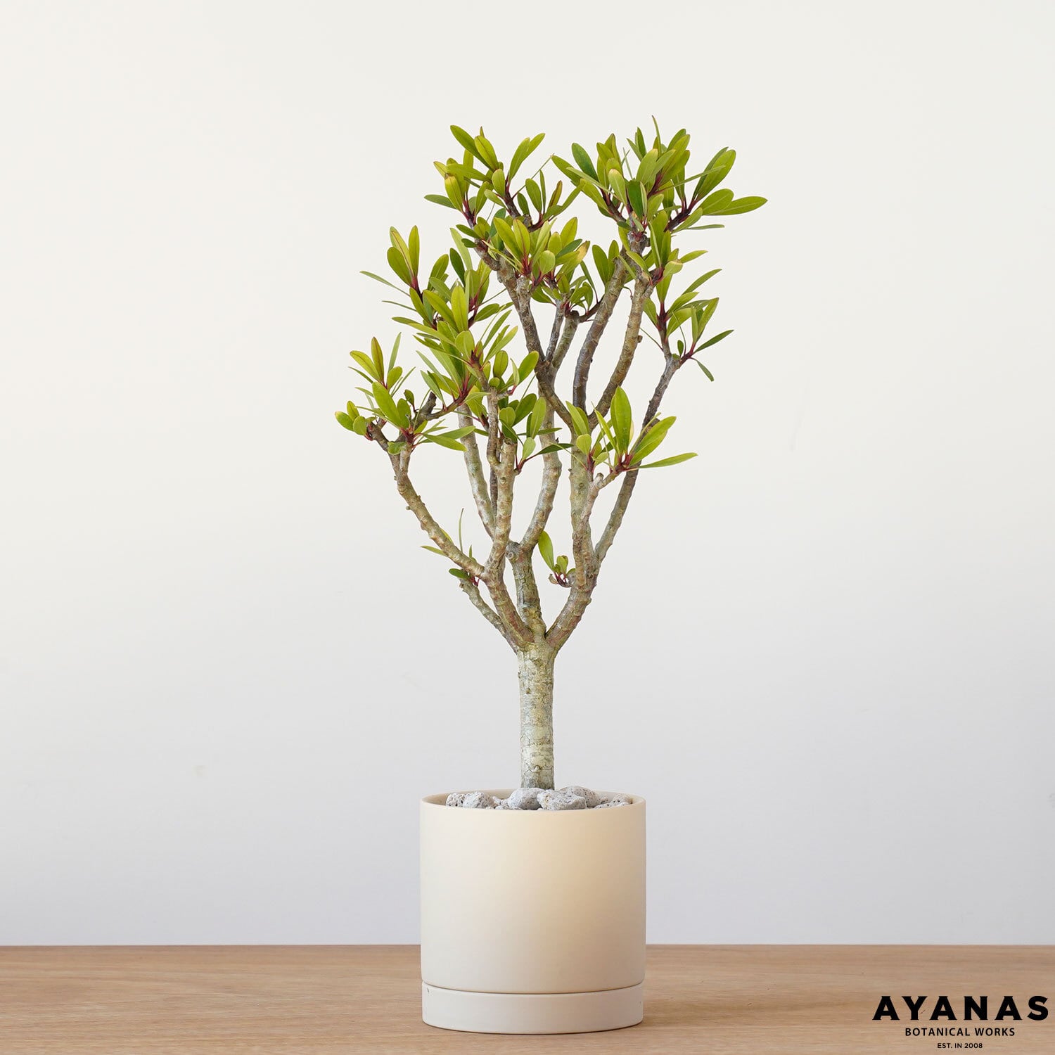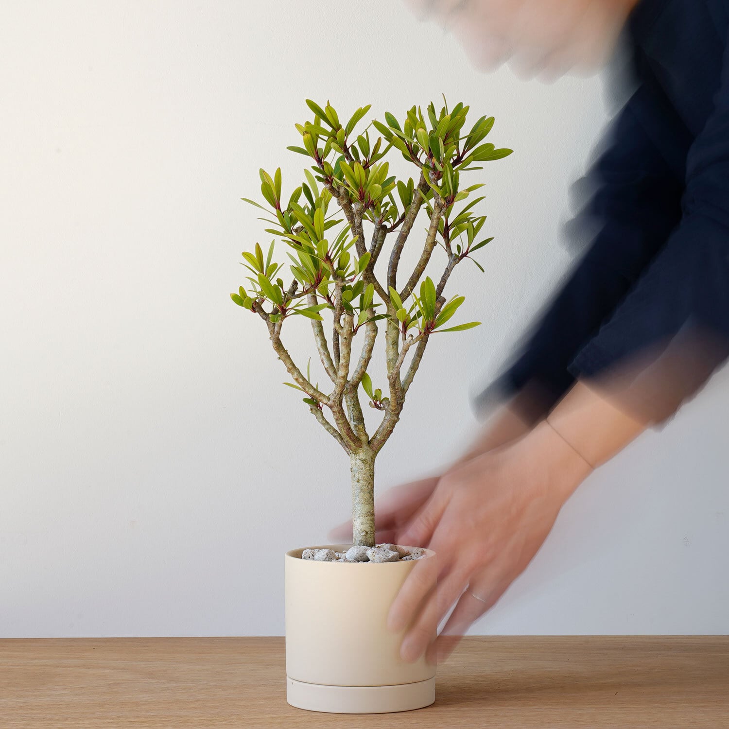樹形の良さを引き立てるシンプルな器を合わせました。
