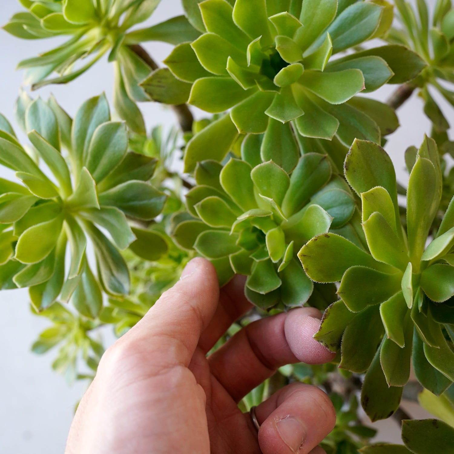 花束みたいな姿で展開する多肉植物。