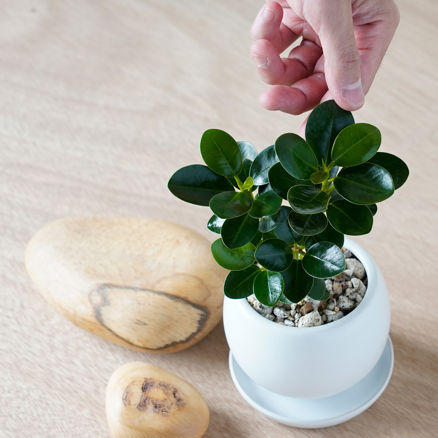 艶のある丸葉が可愛らしい人気のゴムノキ、パンダガジュマル。