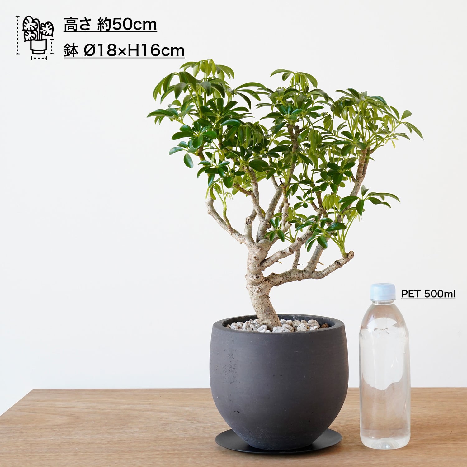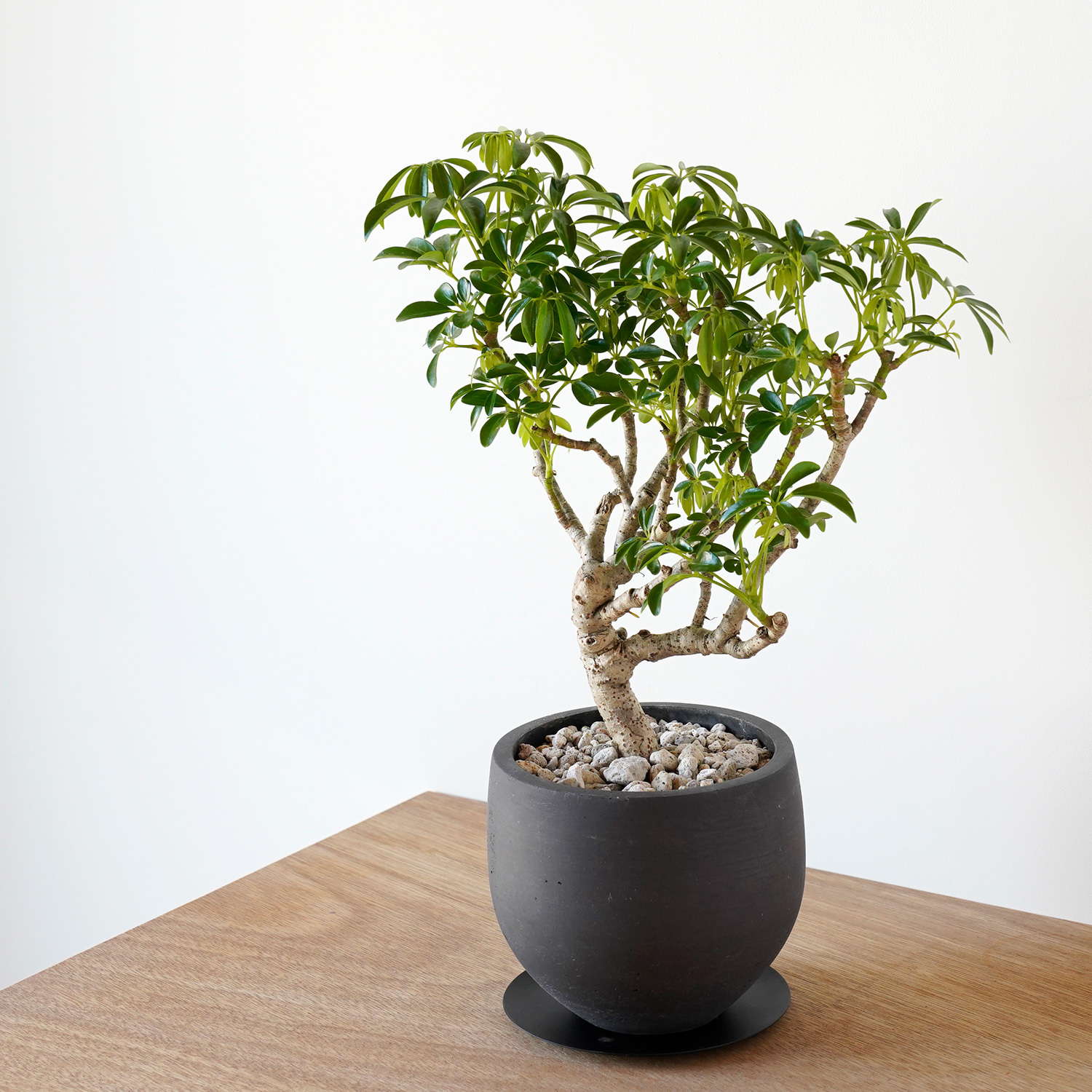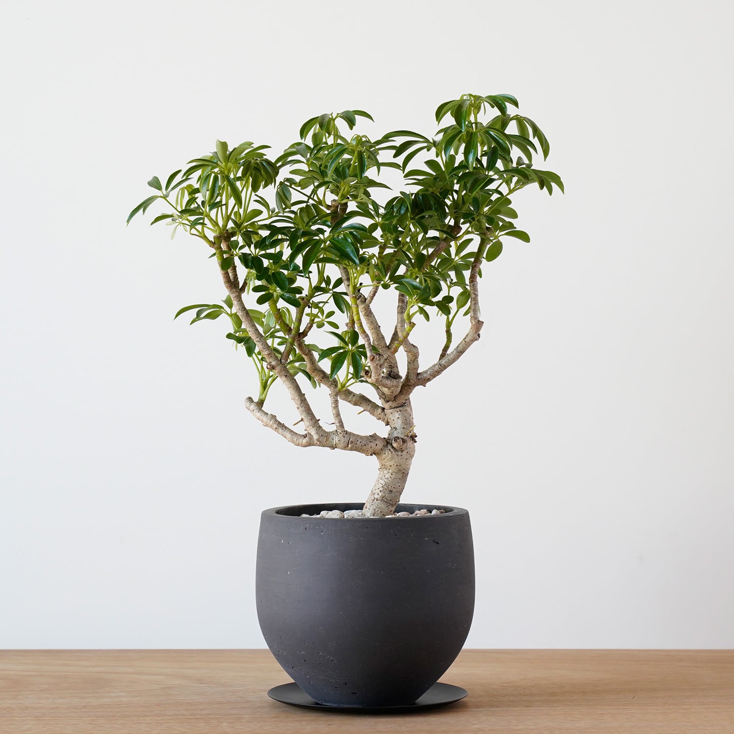 シンプルでインテリアに取り入れやすく、このシェフレラような特徴的な樹形の良さを引き立てます。