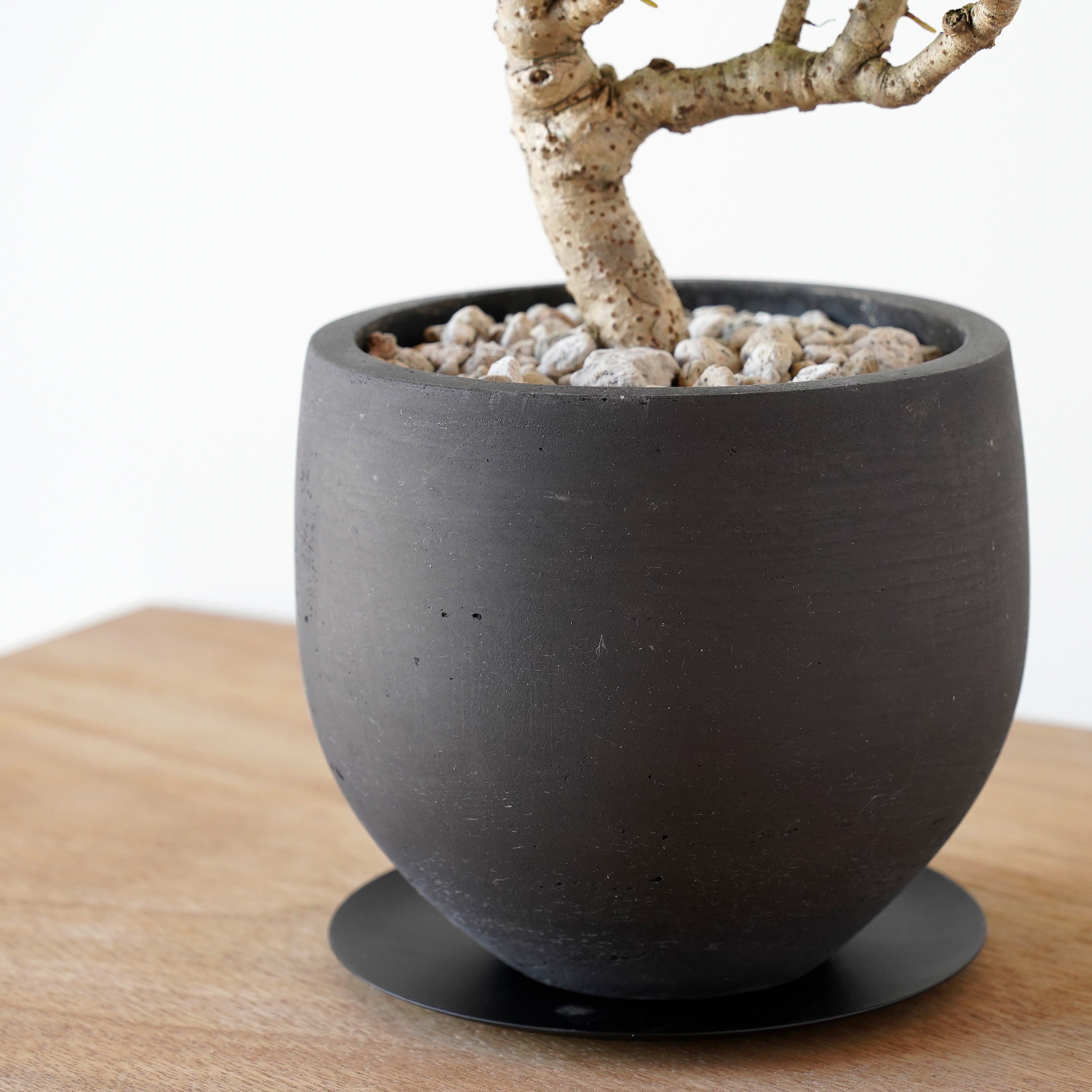 黒に近い焦げ茶色の鉢。