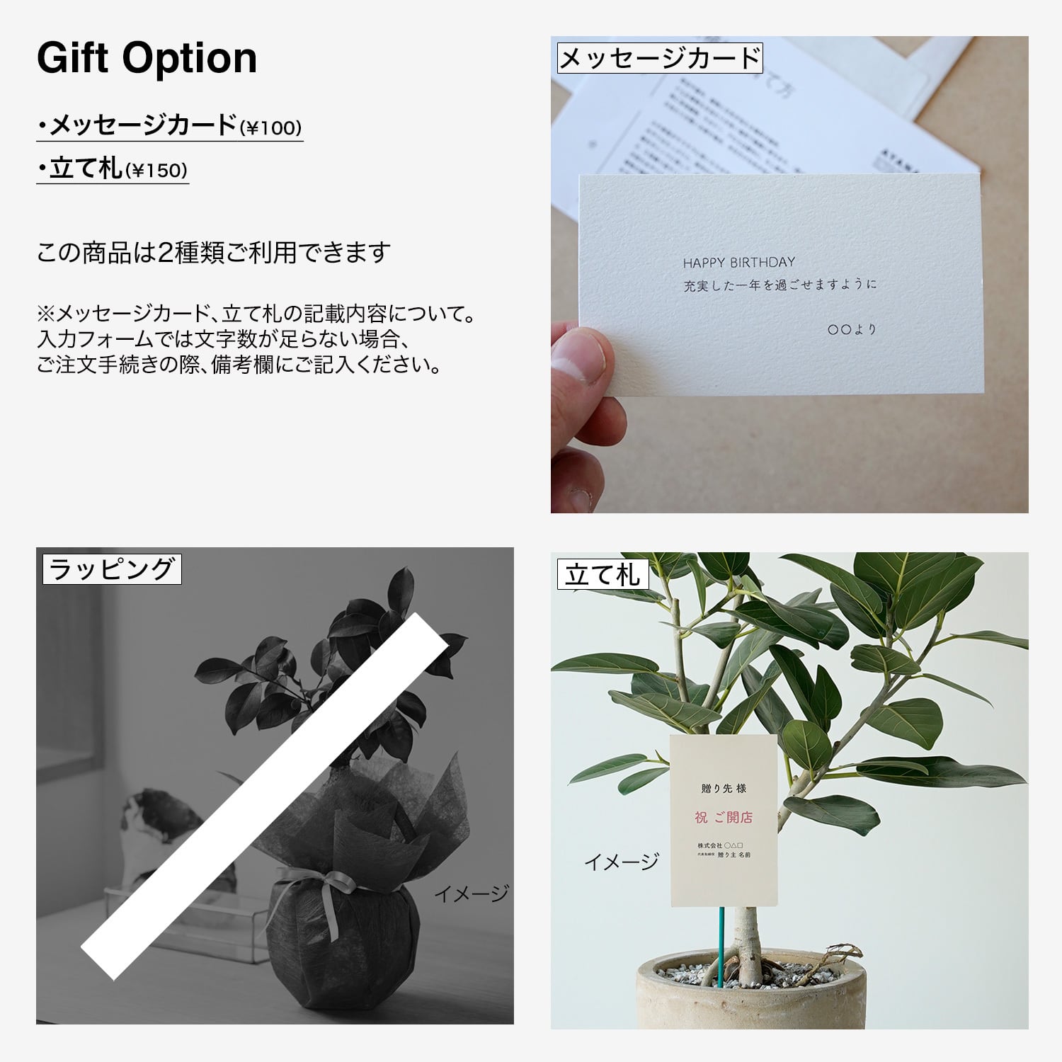 ギフトオプション|メッセージカード(100円)、立て札(150円)