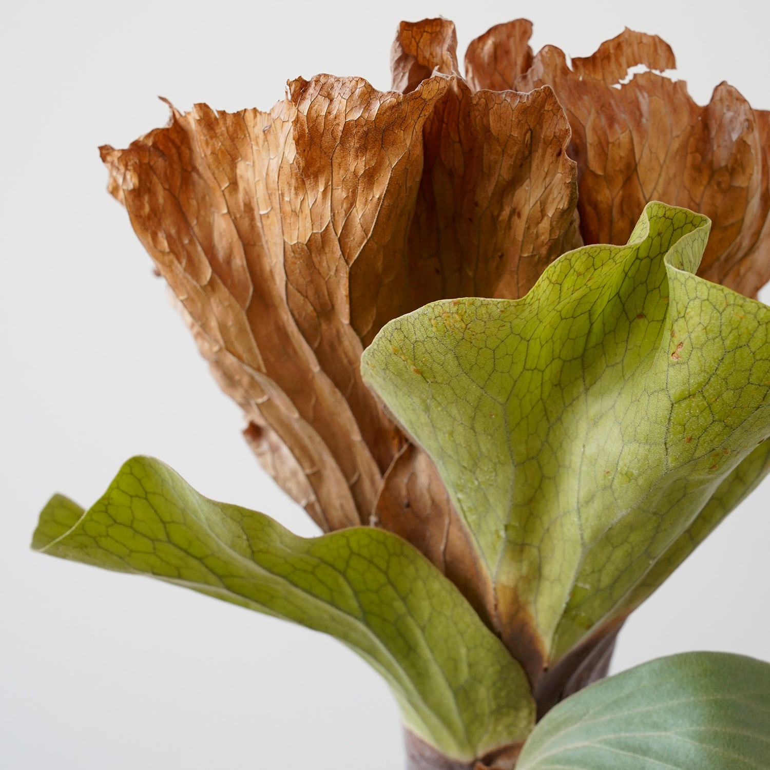 幅広の胞子葉と大きな貯水葉が特徴の迫力あるビカクシダです。