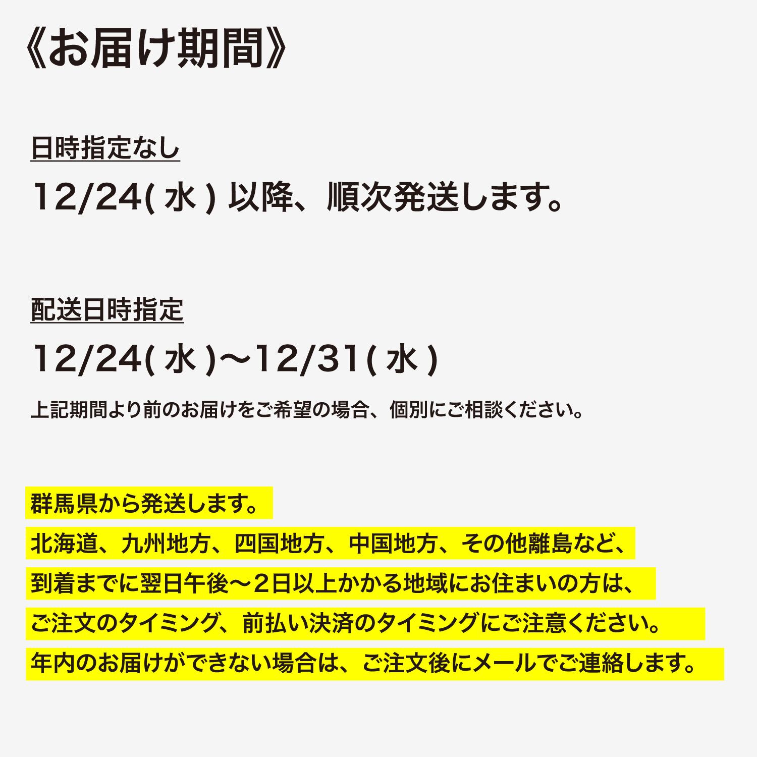 ※この期間より前のお届けをご希望の場合、ご注文前にご相談ください。