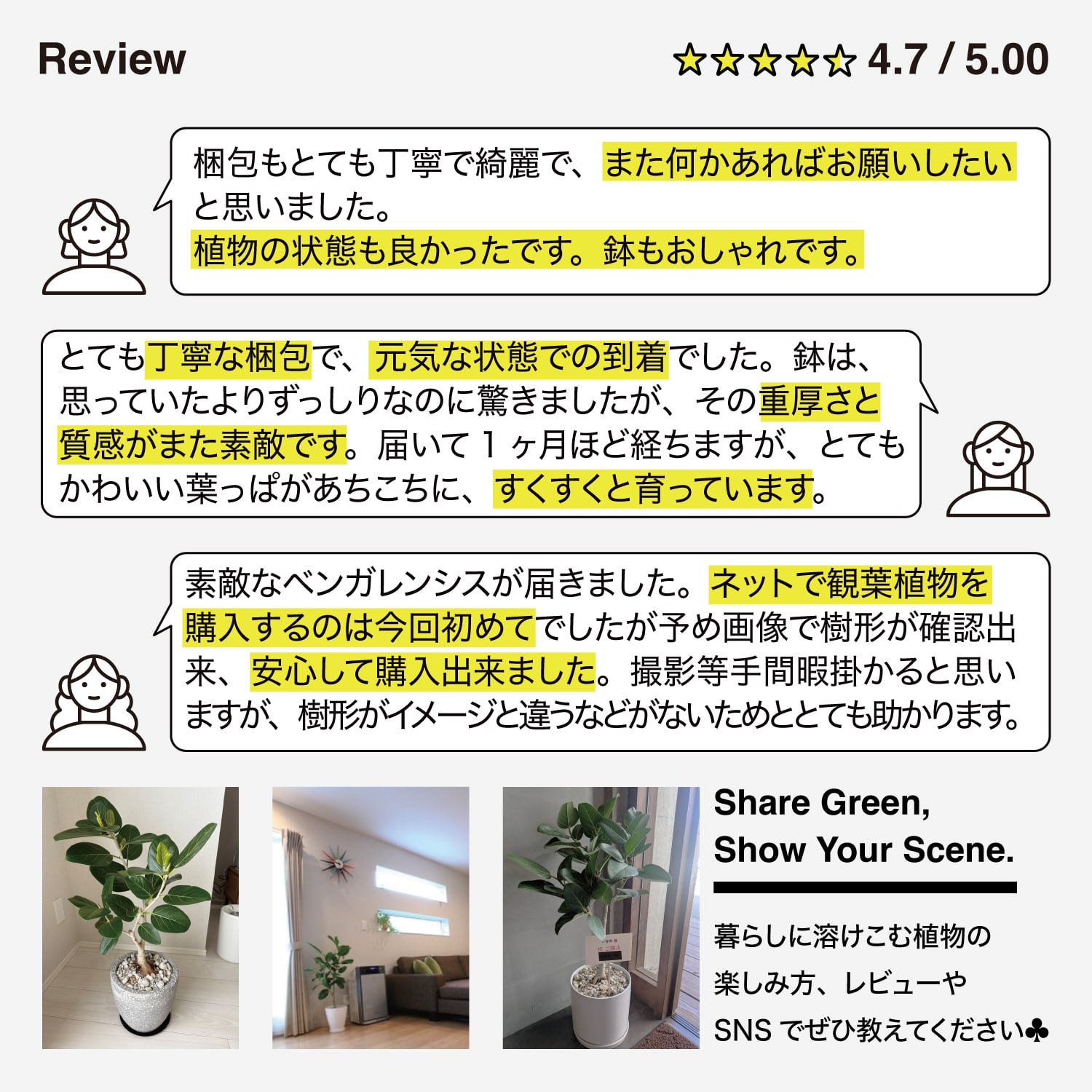 ・観葉植物の育て方メモ付き。