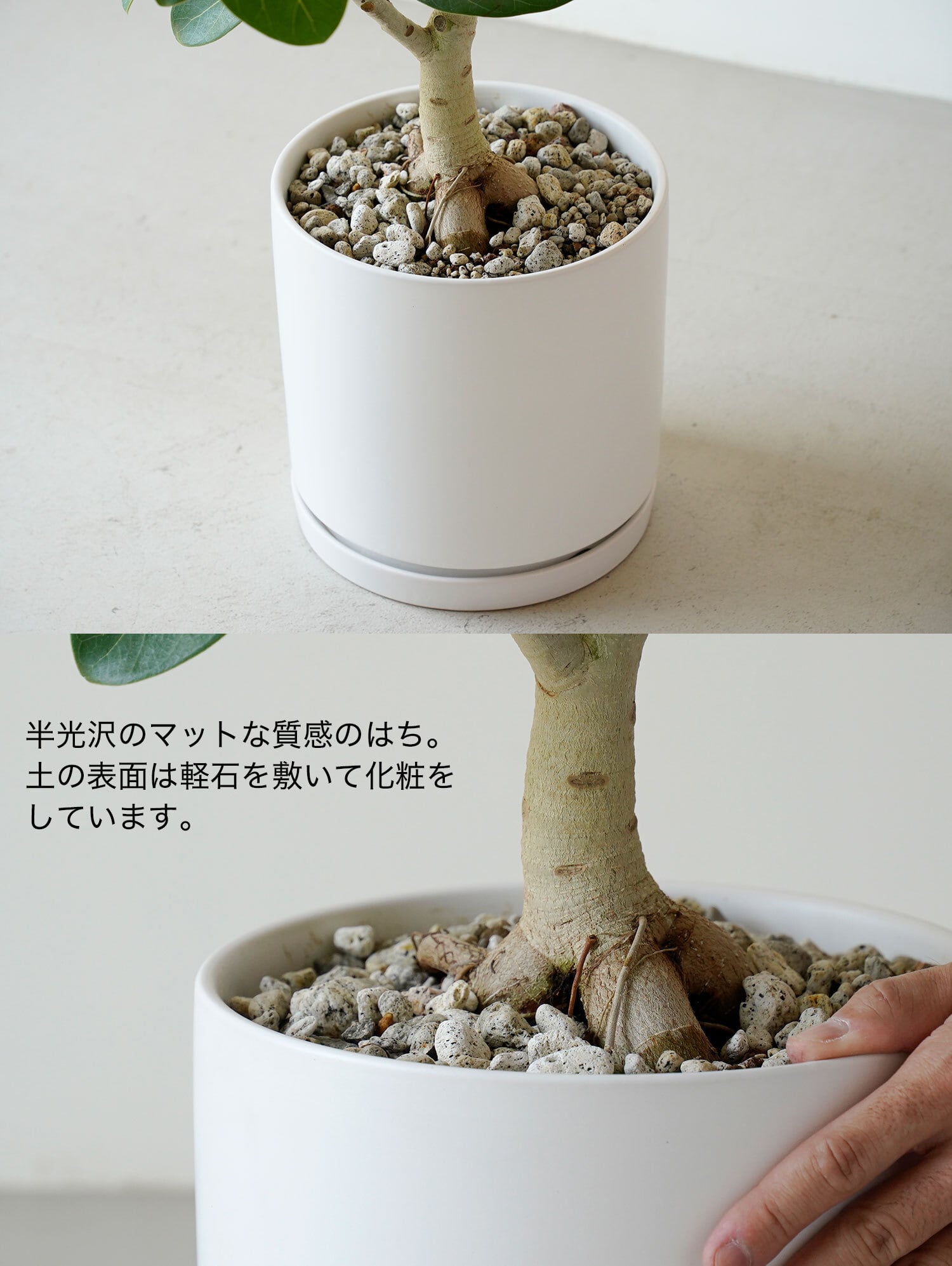 ・シンプルな白い陶器の植木鉢・受皿。鉢底穴あり。