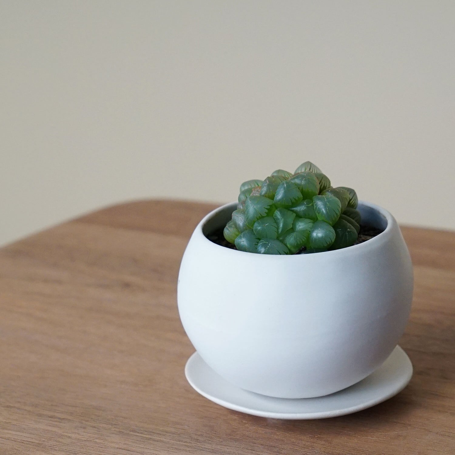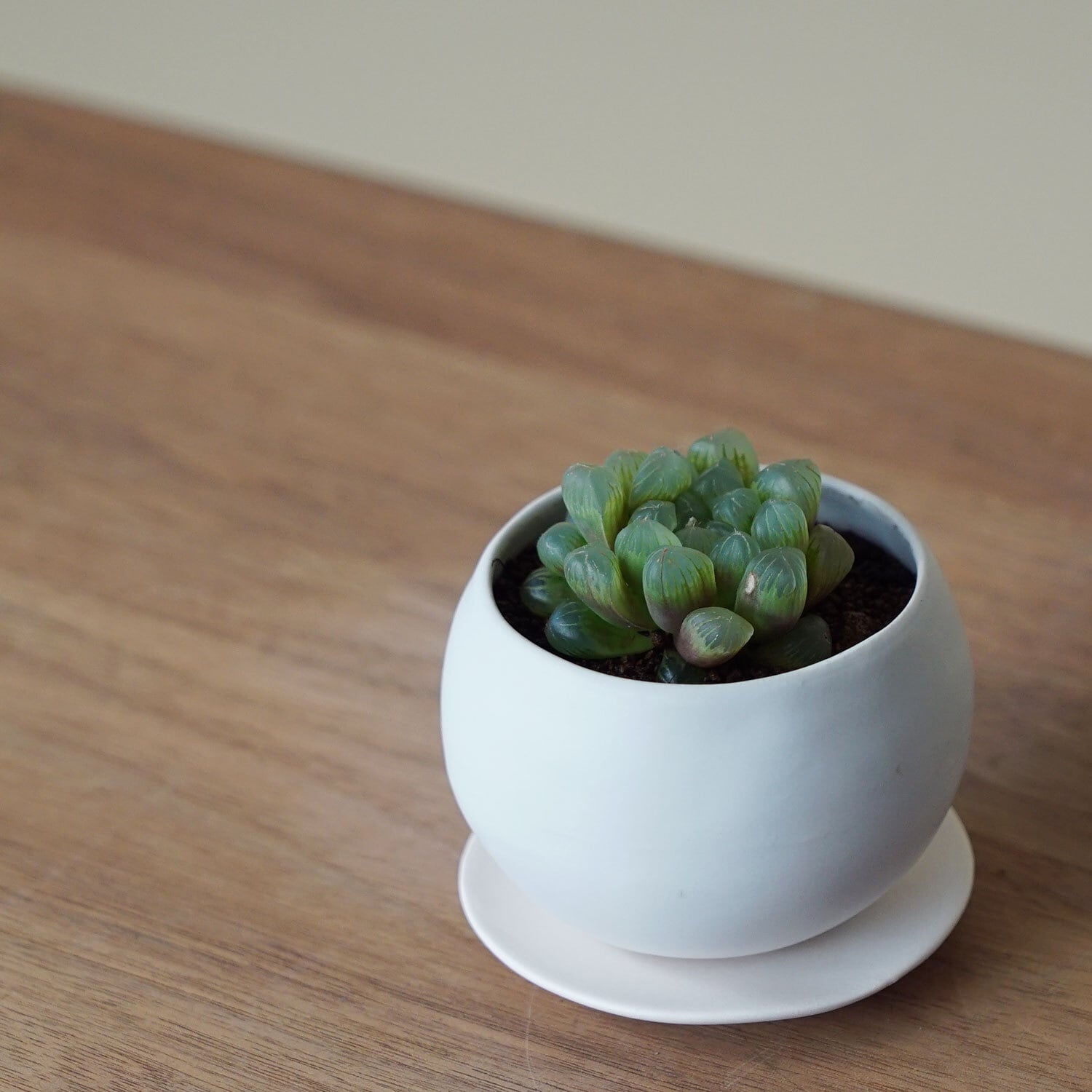 白い半光沢の質感。(黒い鉢は廃盤です)