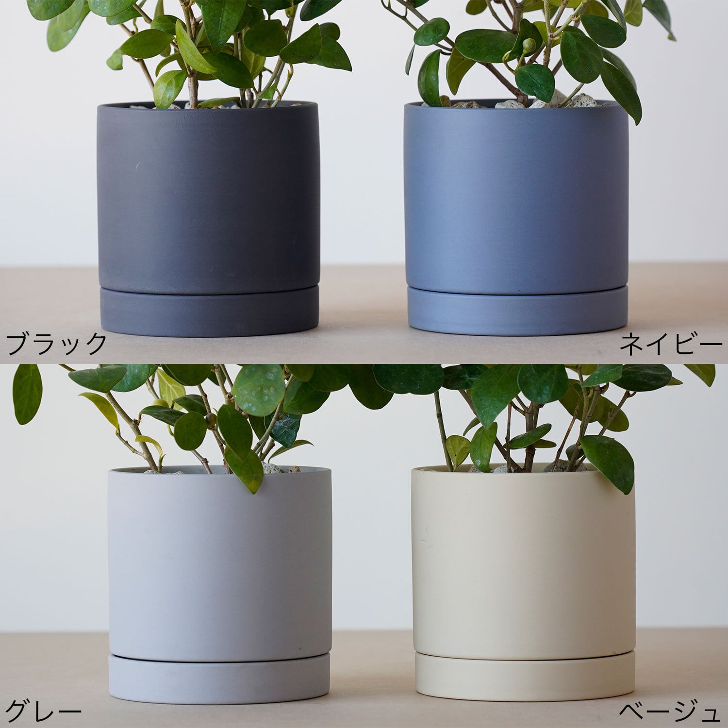 ・シンプルな陶器の植木鉢・受け皿。鉢底穴あり。