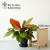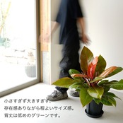 背丈低めのフロアサイズ。小さな鉢をいくつも並べるより、一鉢だけで空間にリズムが生まれます。観葉植物初心者さんにもおすすめのちょうどいい大きさです。