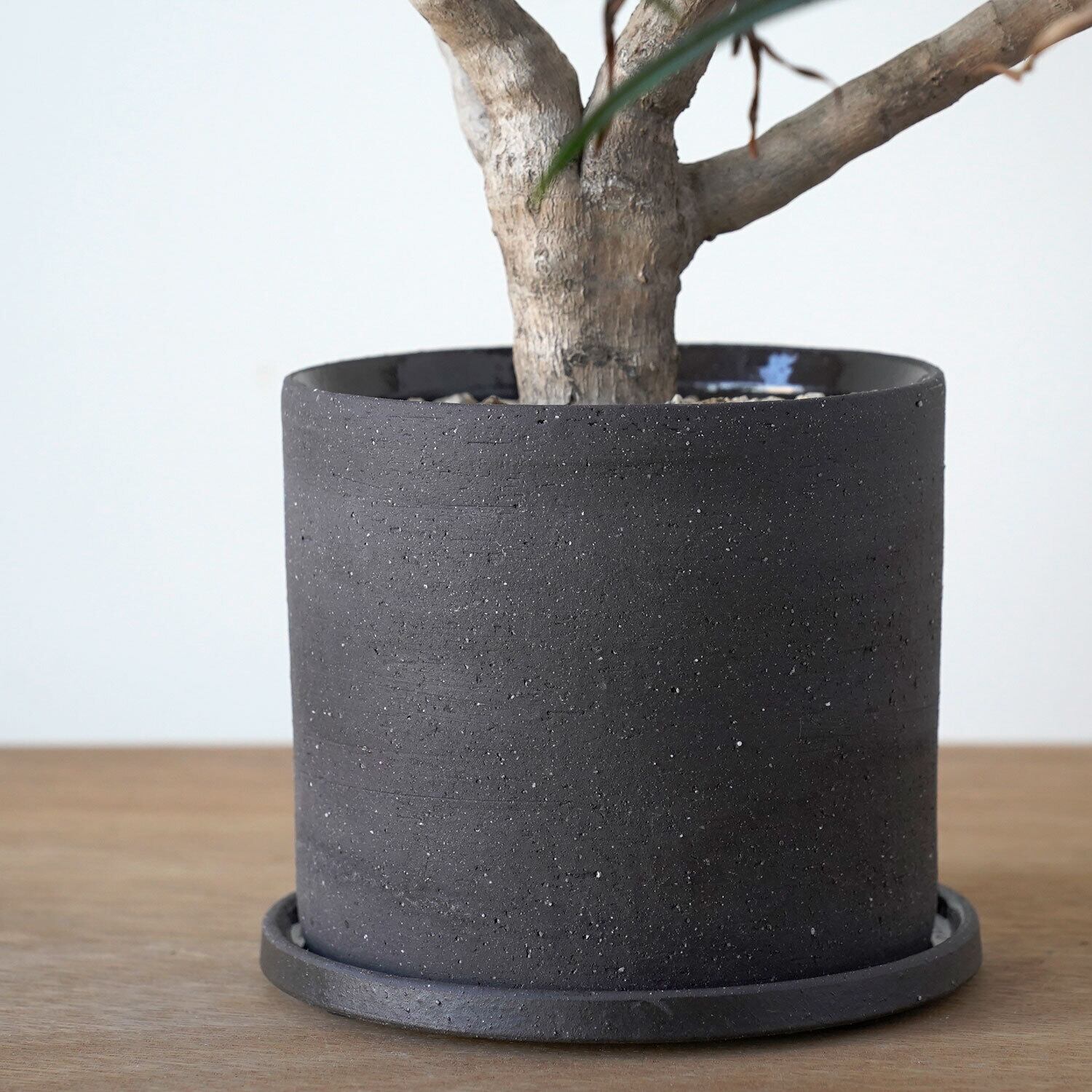 植物を引き立てるシンプルな鉢・受皿のセット。陶器製です。鉢底穴あり。