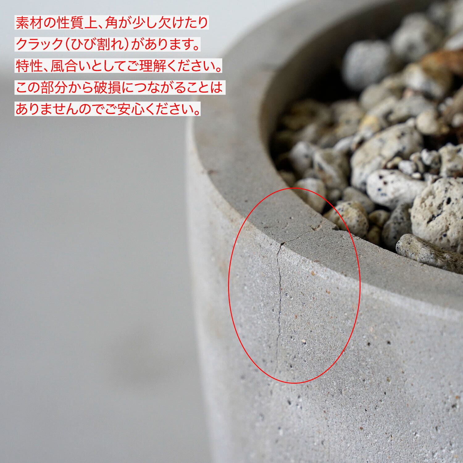 鉢はマットな質感のセメント製。ボテッと重厚感がありながらスッキリ軽やかなデザインです。一般的な住宅の白壁から、色や素材感のある店舗やオフィスの内装にも似合います。